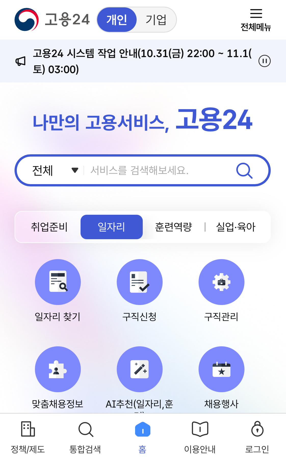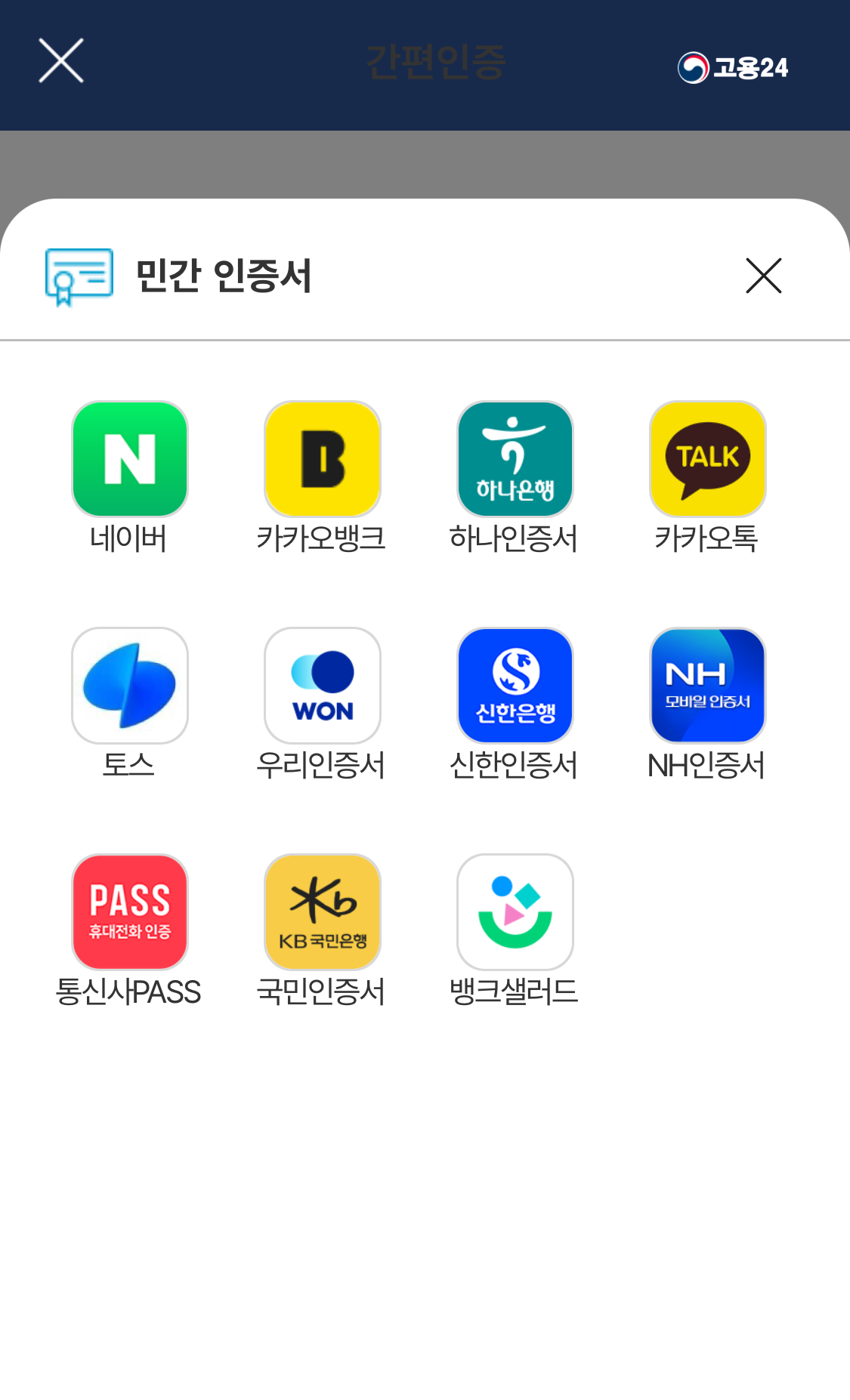 먼저 고용24에 접속 후 로그인을 합니다. 저는 민간인증서가 가장 편해서 이걸로 했지만 다른걸로 하셔도 됩니다.