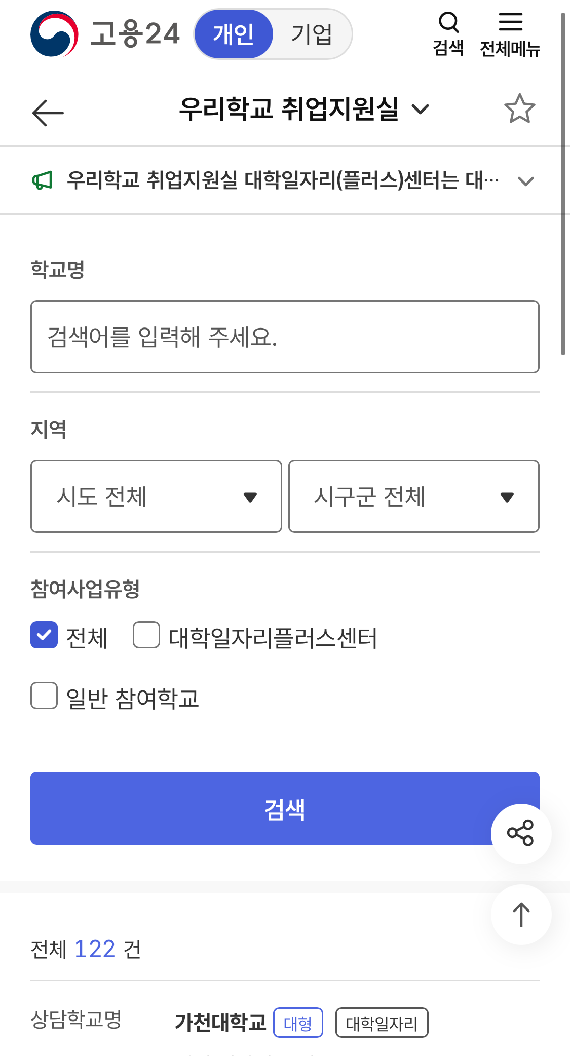 대학교 취업상담은 한번에 한 학교만 신청 가능합니다. 한 학교에서 상담을 받은 후에 다른 학교에 신청이 가능합니다.